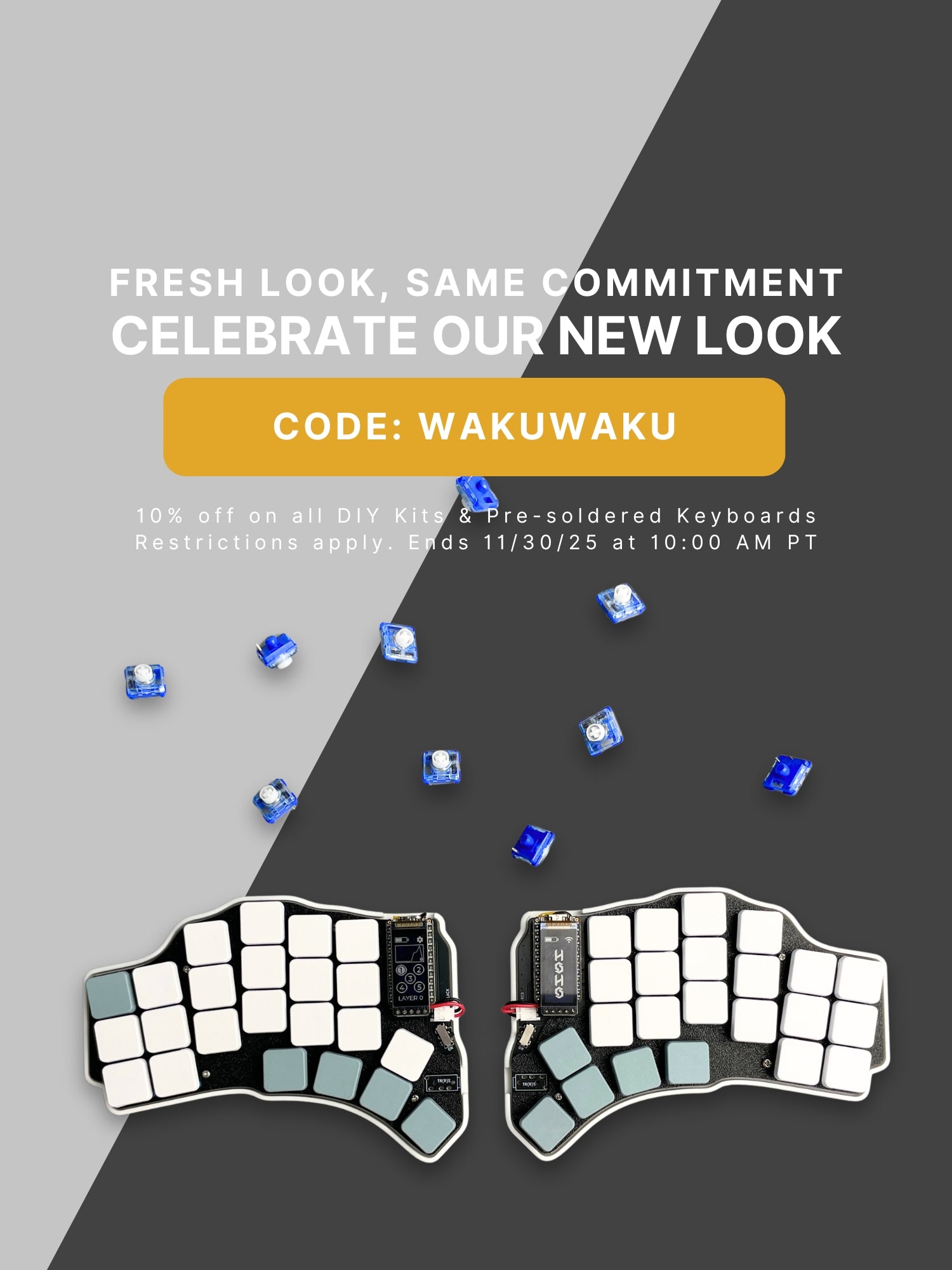Use code WAKUWAKU for 10% off DIY kits and pre-soldered keyboards.