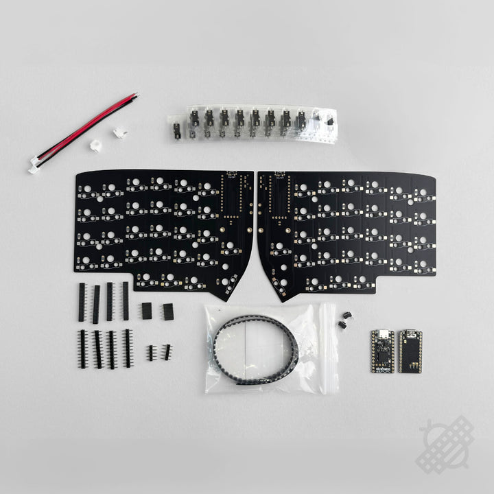 This keyboard PCB comes without key switches, keycaps, and cases.