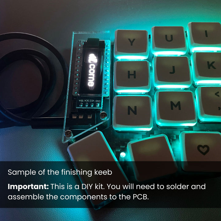 The Corne keyboard, designed by foostan, is a split keyboard with 3×6 column staggered keys and 3 thumb keys. This version is based on an unofficial fork at https://github.com/daysgobye/crkbd