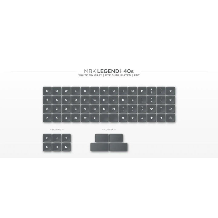 A set of MBK Legend ‡ 40s keycap ( Low Profile MBK keycaps with letters ) includes: