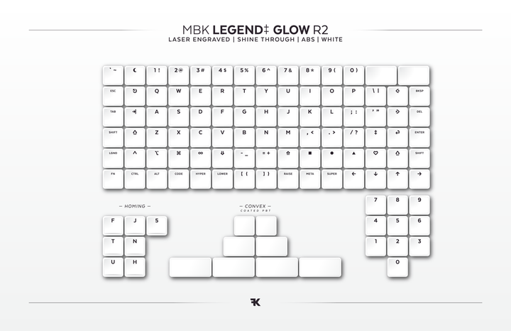 MBK Legend‡ Glow R2 White Keycap Set with Keycap Puller