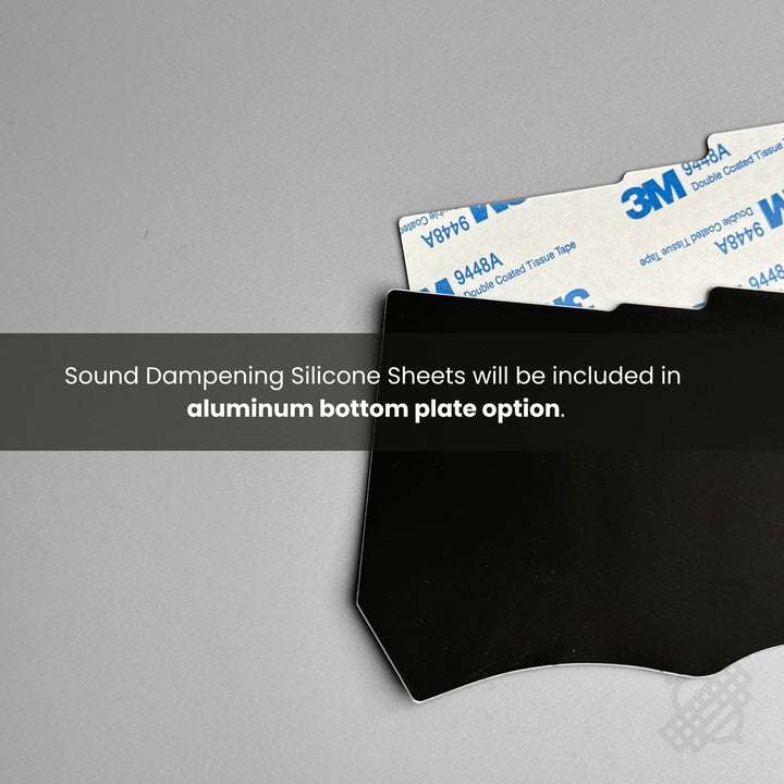 - Sound Dampening Silicone Sheets will be included in aluminum bottom plate option.