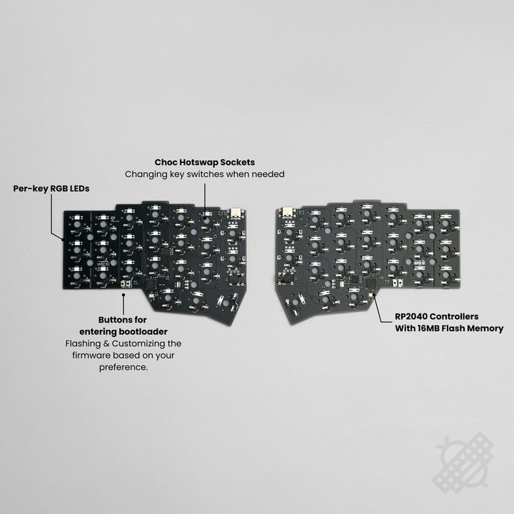 This keyboard PCB comes without key switches, keycaps, and cases.