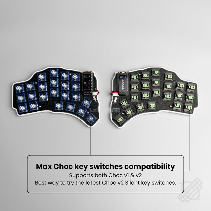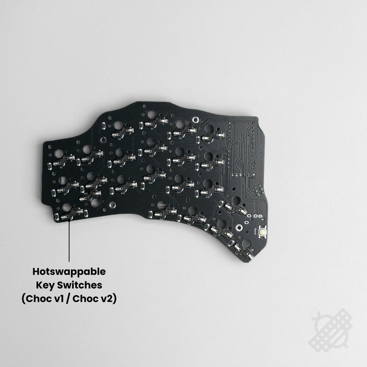 - Hotswap Sockets: Changing Kailh Choc v1 / Choc v2 key switches anytime.