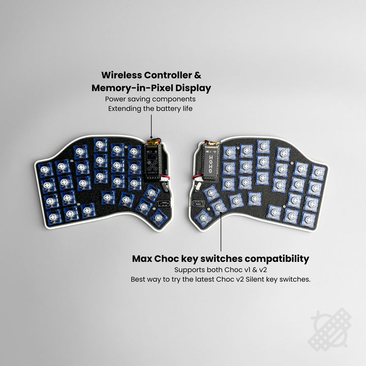 - Hotswap Sockets: Changing Kailh Choc v1 or the latest Choc v2 key switches anytime.
