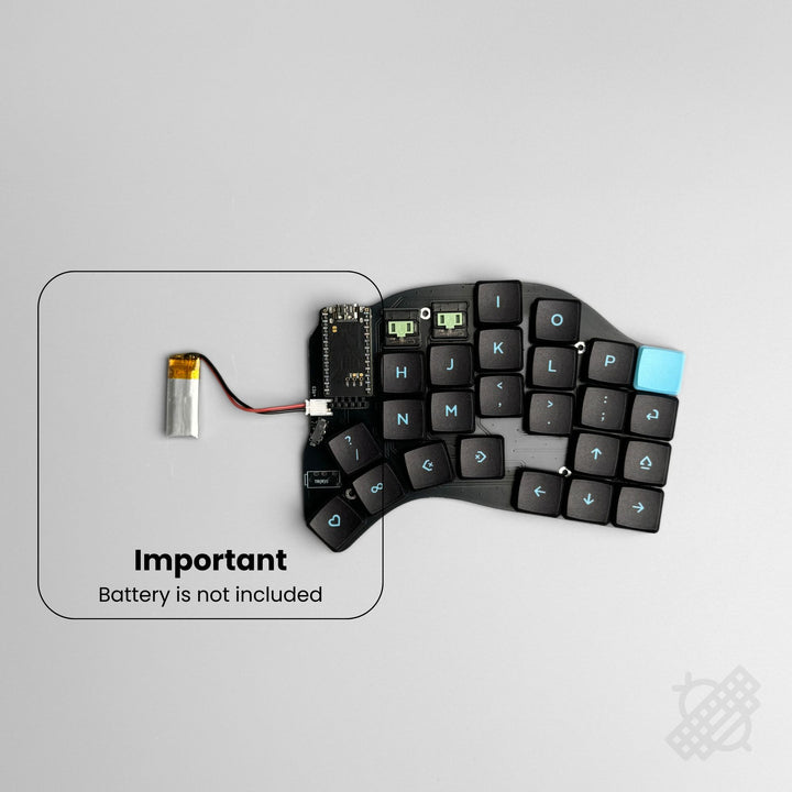 - Battery Requirement: This keyboard does not ship with batteries. Please purchase a pair of 301230 or 401230 batteries with JST-PH connectors and the correct polarity from local stores.