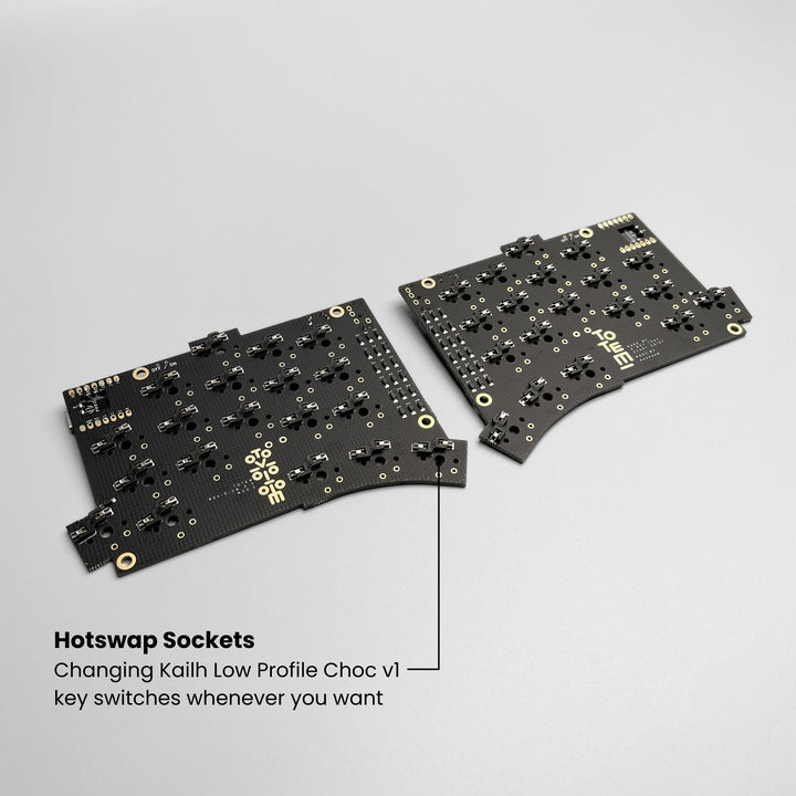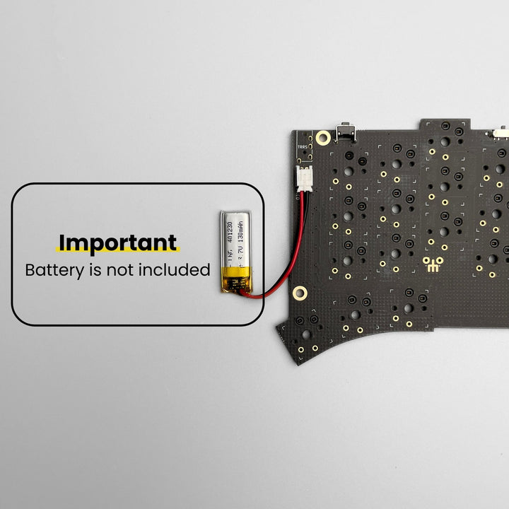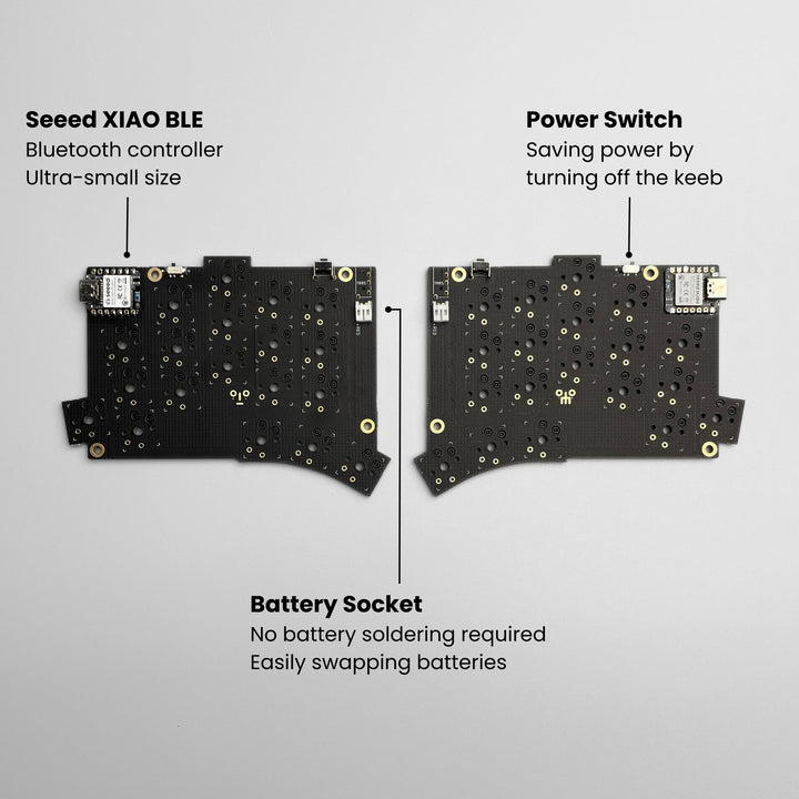 - No soldering tool is required. The components (SEEED XIAO BLE controllers, battery sockets, power switches, Kailh Choc v1 hotswap sockets, reset buttons and diodes) are pre-soldered on the board. You do not need any soldering tool to build this keyboard.