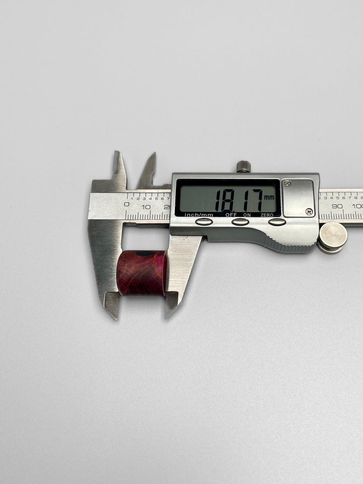 • Material: Stabilized Wood Knobs • Color: Red • Height: 18.2mm • Width: 18mm Because the raw material is natural wood, the color and wood pattern are not exactly the same in each knob. Installation of this rotary knob may not be possible if your keyboard is equipped with an OLED cover. This rotary knob is not compatible with EC12.