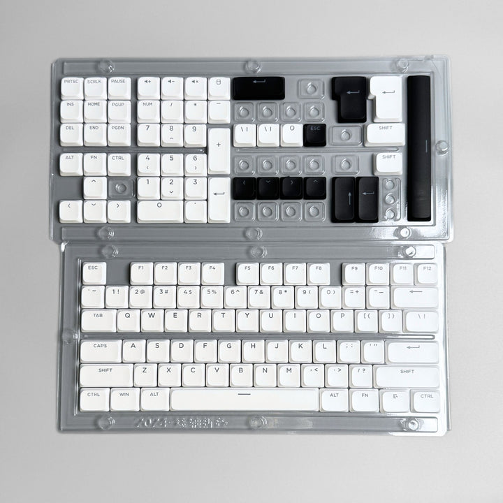 Uniform Low Profile PBT Keycap Set with Shine Through Legends for Cherry MX, Choc v2 and Gateron kS-27 / KS-33 Key Switches in White & Black