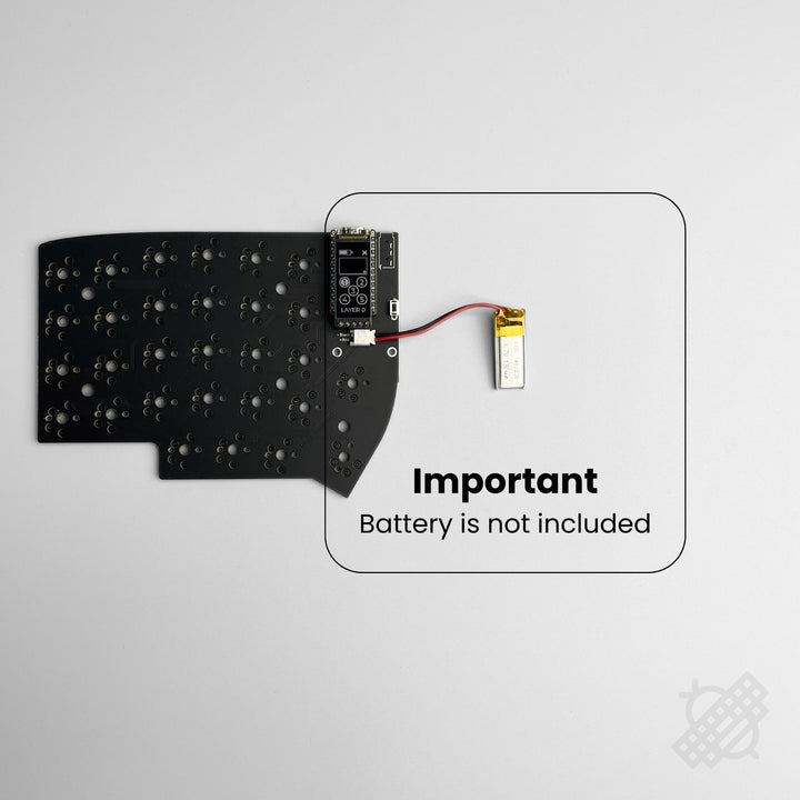 - Battery Requirement: This keyboard does not ship with batteries. Please purchase a pair of 301230 or 401230 batteries with JST-PH connectors and the correct polarity from local stores.